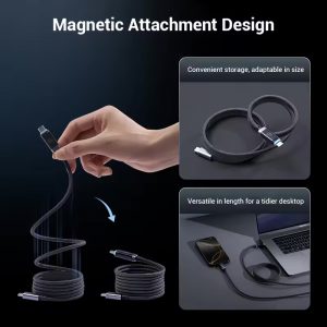 - Thiết kế từ tính chống rối thông minh Các nam châm nhỏ dọc thân cáp giúp cuộn gọn dễ dàng, bảo vệ cáp khỏi gập gãy và tăng tuổi thọ sản phẩm.