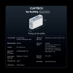 Giới thiệu sản phẩm Pin dự phòng Cuktech 10.000mAh PB100S – Sạc nhanh 30W tiện lợi