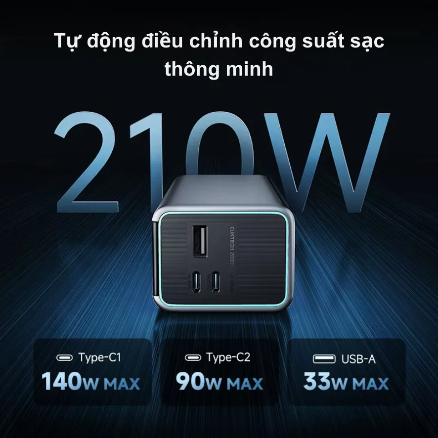Sạc Dự Phòng Cuktech 15 Ultra 20000mAh 210W – Giải pháp sạc nhanh đỉnh cao với công suất 210W, hỗ trợ PD 3.1, PPS 2.0, Mi Turbo 120W, giúp bạn sạc MacBook, iPhone, iPad, Xiaomi, Samsung và nhiều thiết bị khác với tốc độ tối ưu. Dung lượng 20.000mAh, đủ năng lượng cho cả ngày dài.