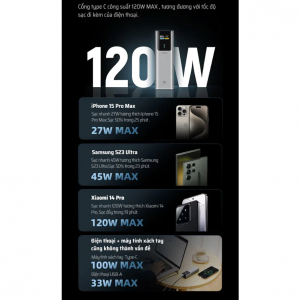- Công suất tối đa 150W – Sạc laptop, điện thoại siêu tốc