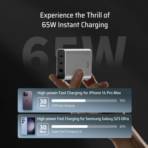 - Công suất 65W mạnh mẽ: Đáp ứng nhu cầu sạc nhanh cho laptop, smartphone, tablet.